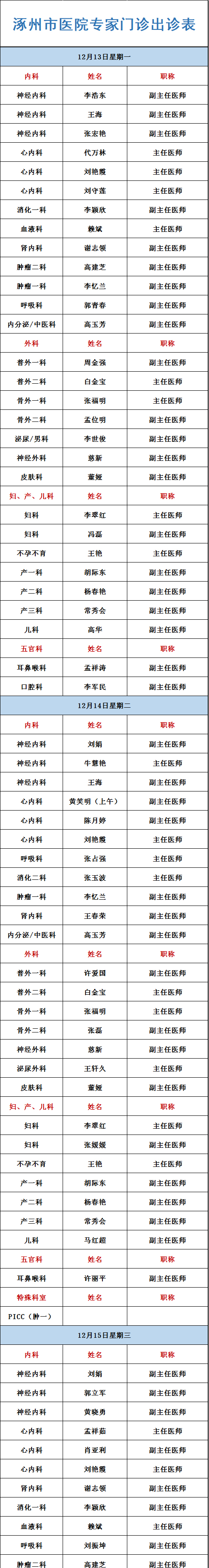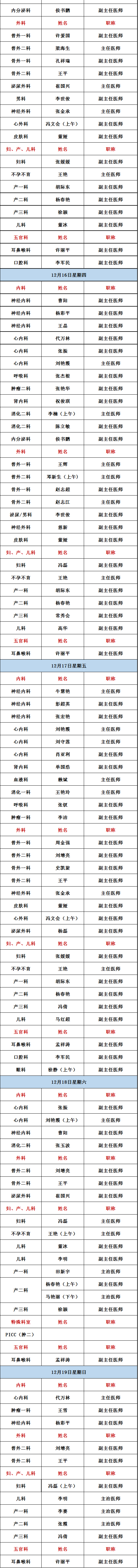 【出诊信息】12月13日-12月19日