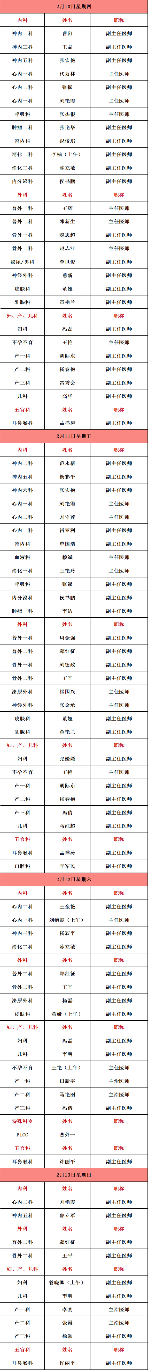 【春节期间出诊信息】2月7日-2月13日
