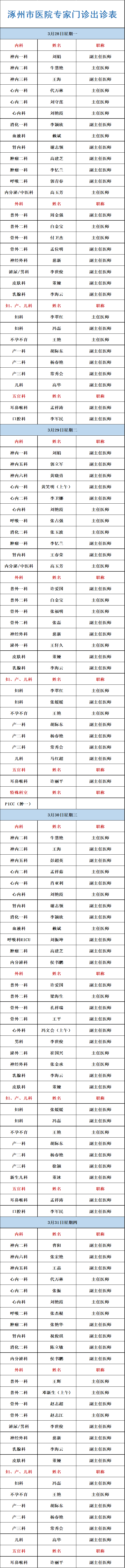 【出诊信息】3月28日-3月31日